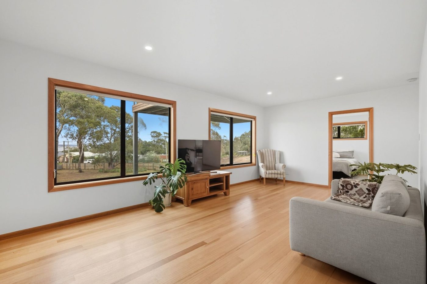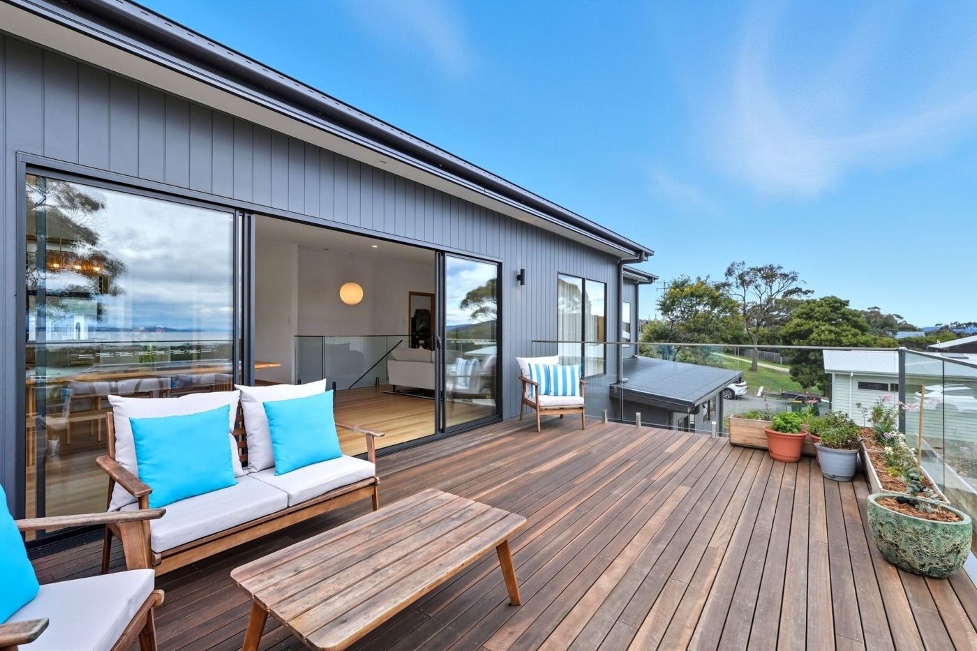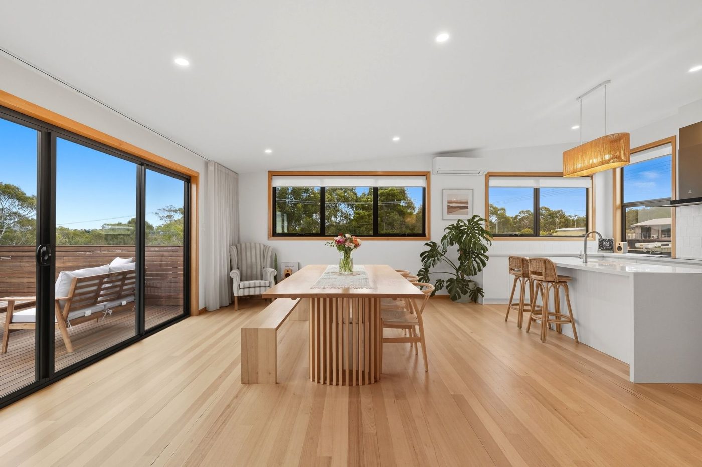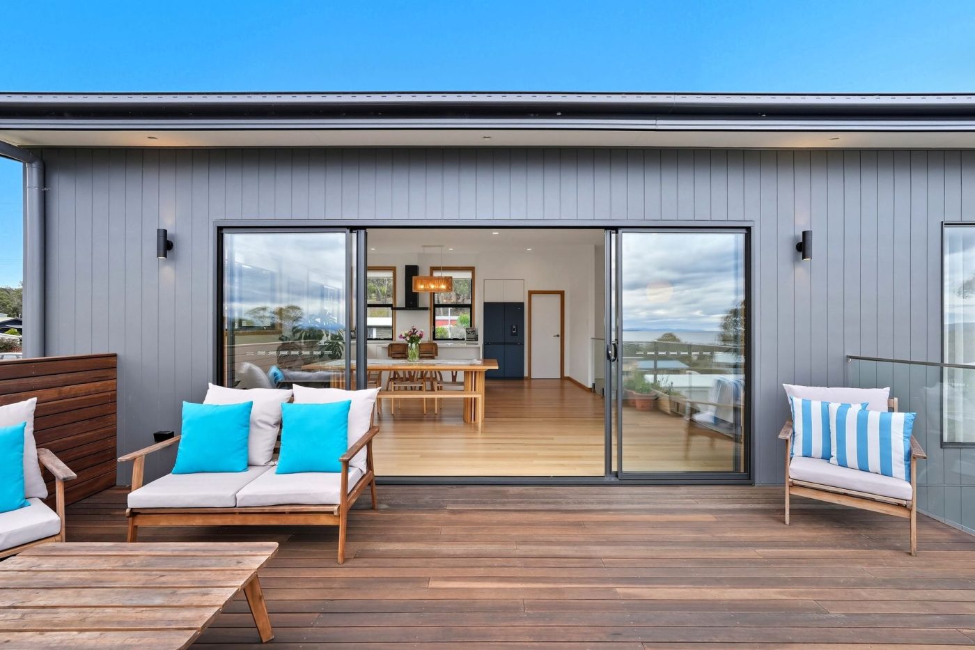– Glass sliding doors to large deck off living area