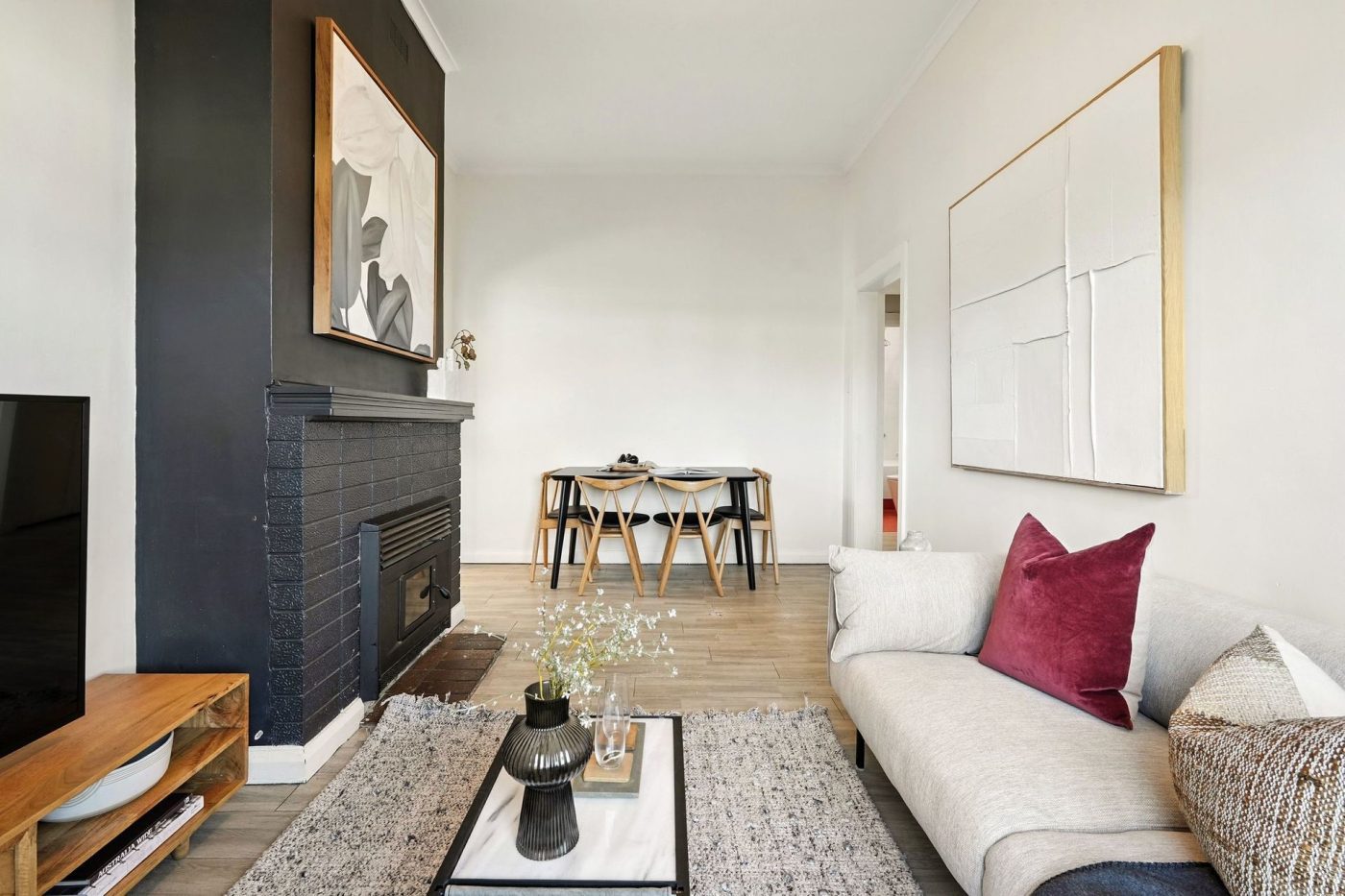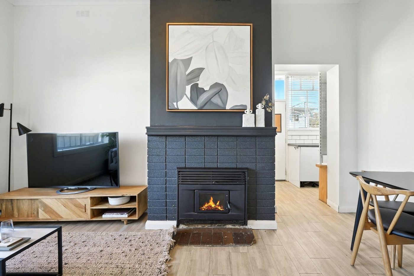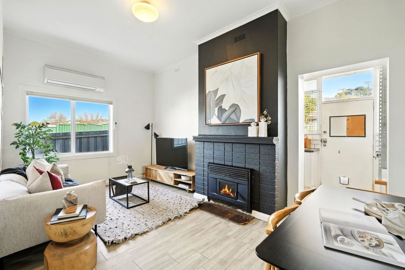 – Generous ceilings height, abundant natural light and a fireplace with feature mantelpiece for atmosphere