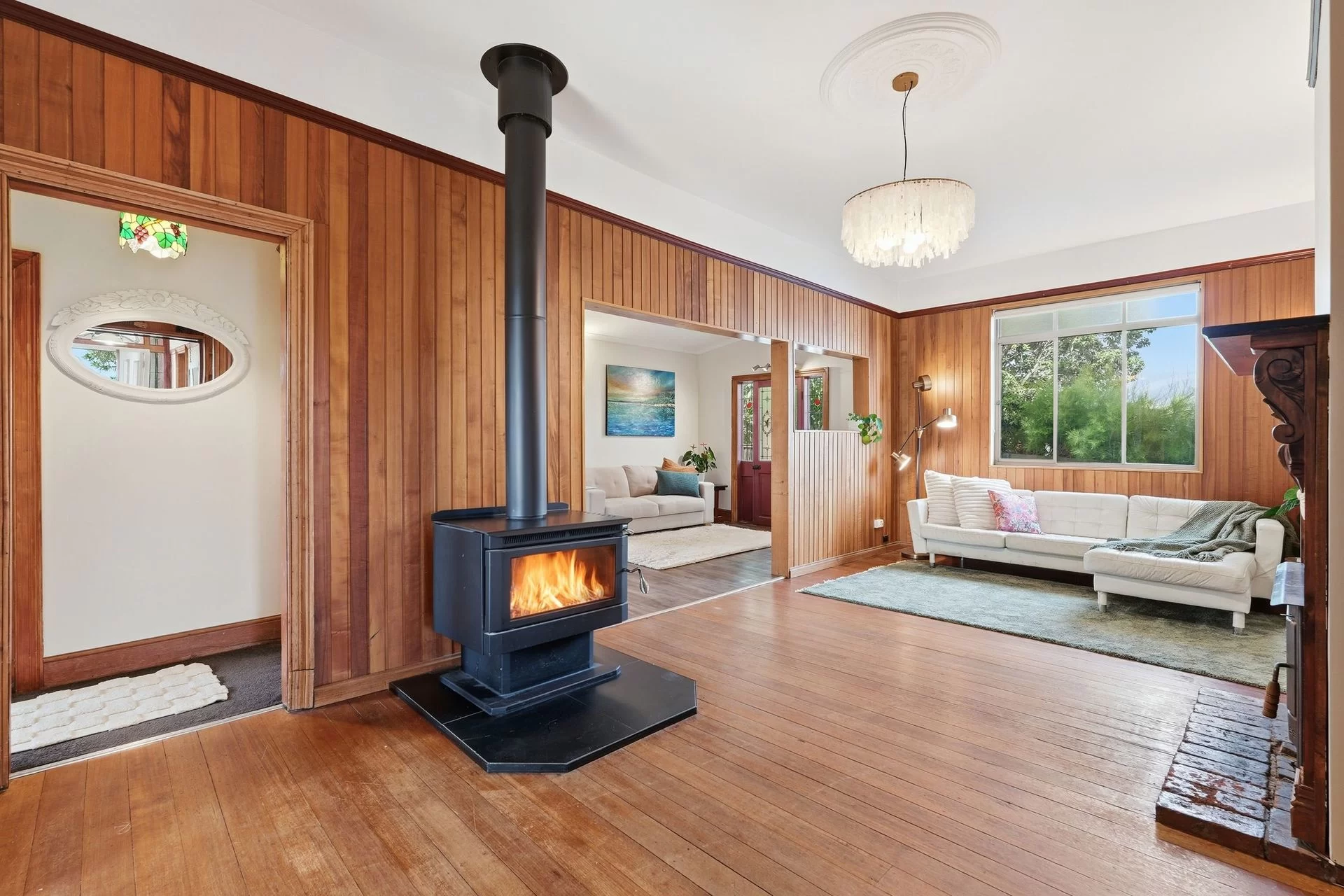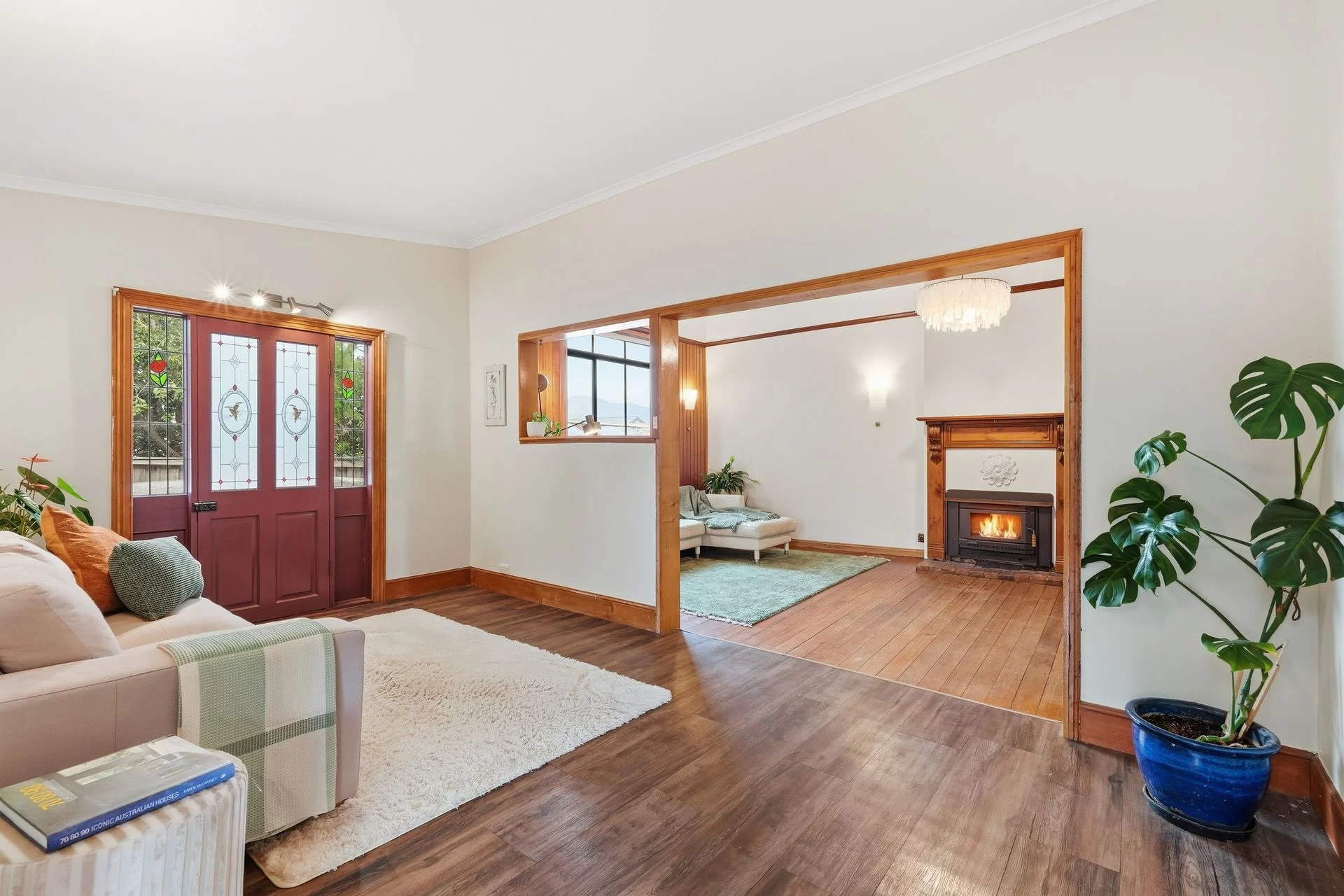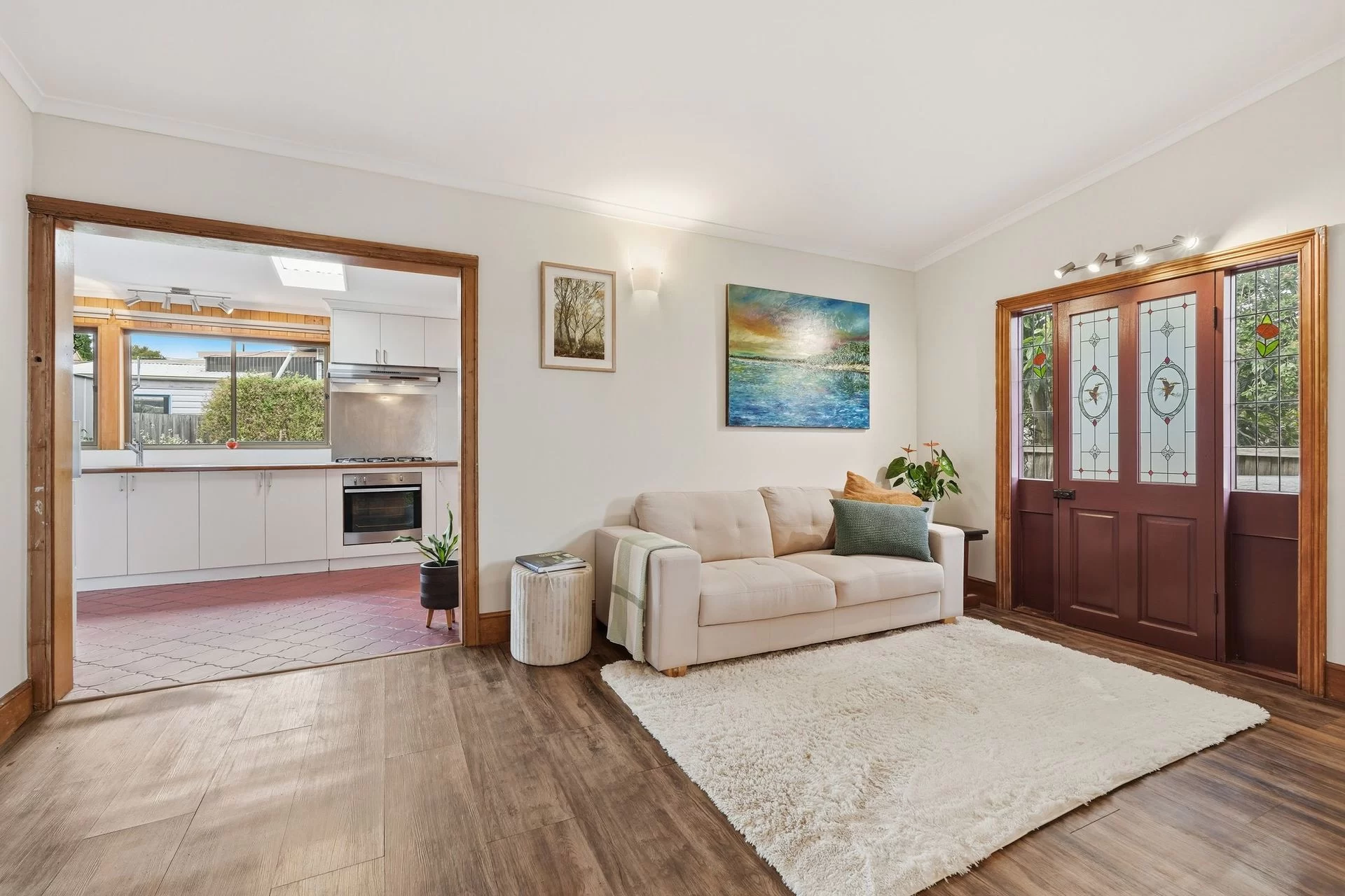 Positioned in a quiet, central Moonah street, this beautifully maintained 1910 character home offers timeless charm combined with exceptional versatility. Showcasing warm timber features throughout, the home welcomes you with a spacious and inviting living room, perfect for relaxed family living. The sunlit kitchen is both practical and functional, featuring excellent bench space and a gas cooktop, and flows through to a sunroom with French doors opening to the backyard.