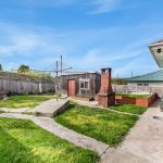– Secure backyard featuring a garden shed for extra storage